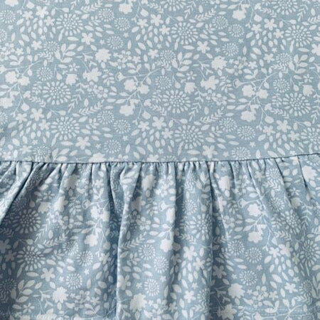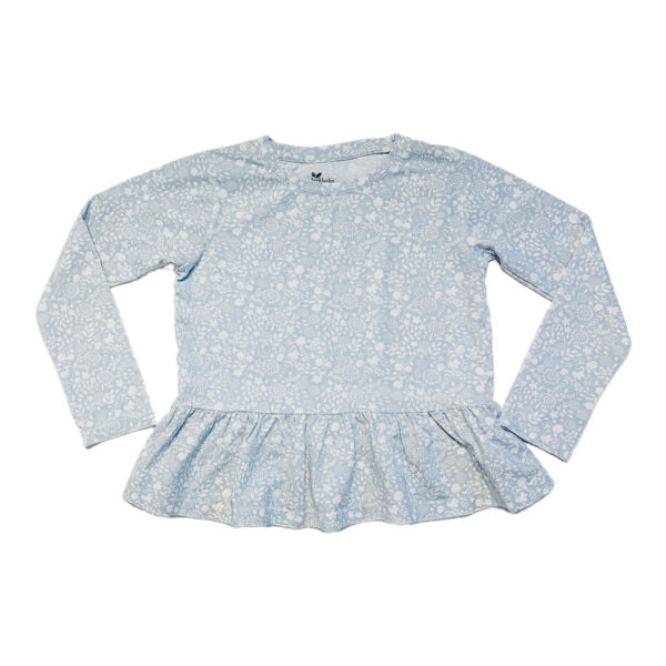 Gaiši zils ar baltiem, maziem ziediņiem garroku krekls. Apakša mazliet kuplāka,