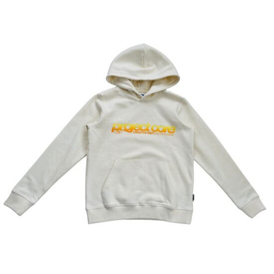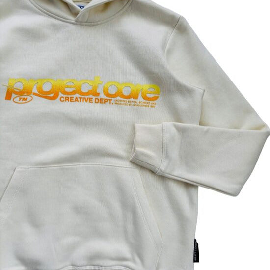 Krēmkrāsas hūdijs ar printu. Priekšā kabata. Iekšpuse ar siltinājumu (brushed inside).