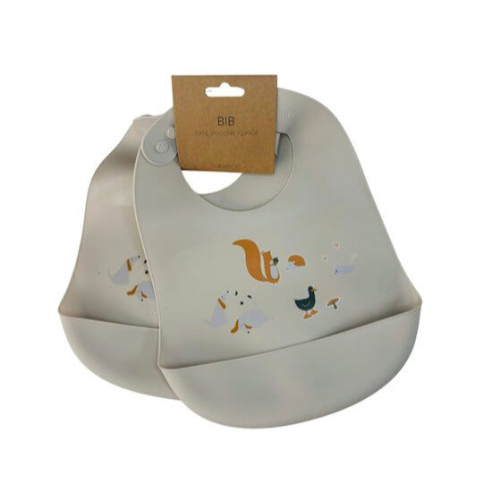 Silikona priekšauti - 2 priekšauti komplektā. Ir kabatiņa, kas palīdz ēdienam nenokļūt tālāk par priekšautu. Kakla daļas platums regulējams. Dzīvnieku prints.