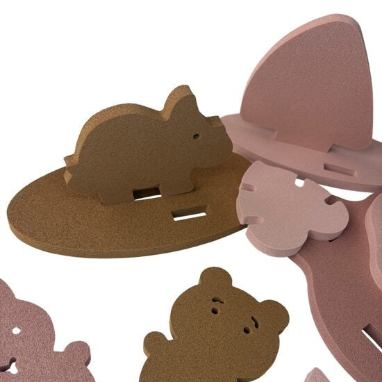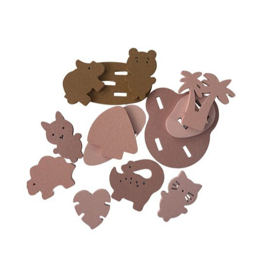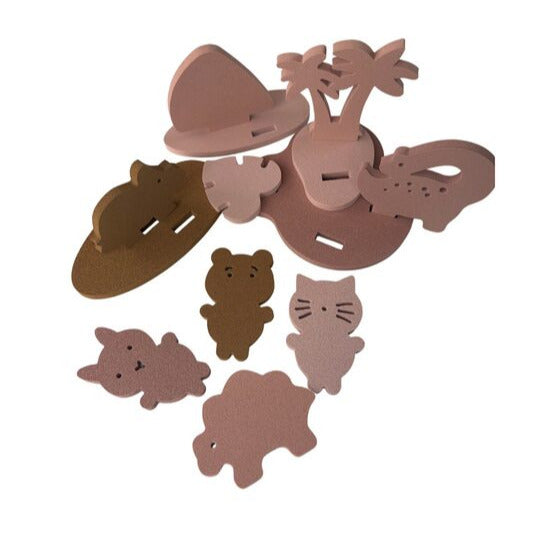 Rotaļlietu komplekts iztēlei ar savienojamiem elementiem. Putu materiāls - ļoti viegls. Lietojot vannā, tos var lipināt pie flīzēm. Komplektā sala, laiva un dzīvnieku figūras, palma, lapa. Tās var ievietot un pārvietot iespraužot.