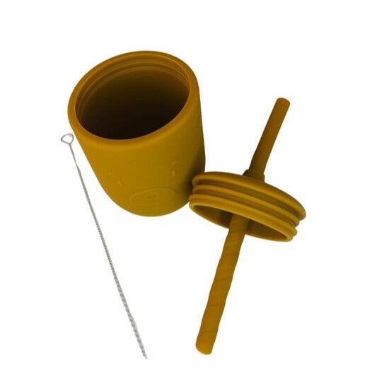 Silikona salmiņkrūze, tilpums 230ml. Salmiņš izņemams, komplektā birstīte salmiņa kopšanai. Krūzei priekšpusē sejiņa.