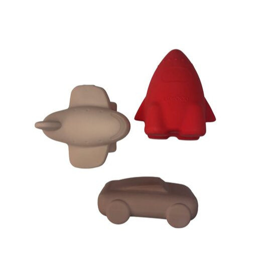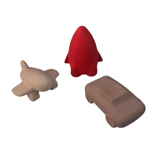 3 gab mantiņu komplekts, kas izgatavotas no 100% naturālas gumijas. Drošas dažādām rotaļām, mantas pilnībā noslēgtas - nav caurumu, kur iekļut netīrumiem vai krāties pelējumam. Mīksts un maigs materiāls uz tausti. Piemērotas mazuļiem no 0mēn +.