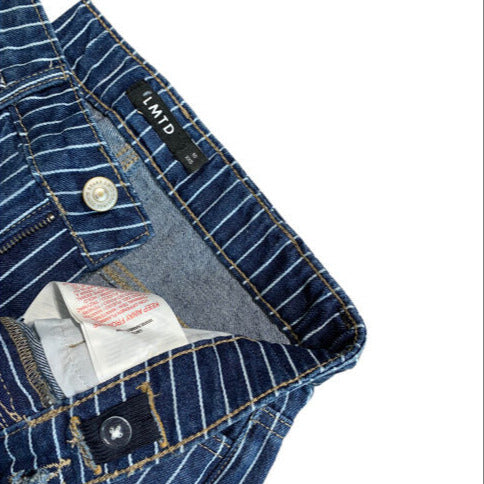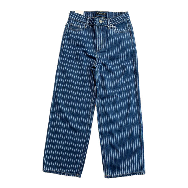 Zili, plati džinsi ar strīpainu rakstu. Vidukļa apkārtmērs regulējams.