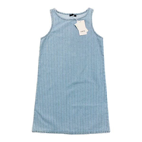 Džinsa kleita/sarafāns. Gaiši zila, gaišu strīpu raksts.