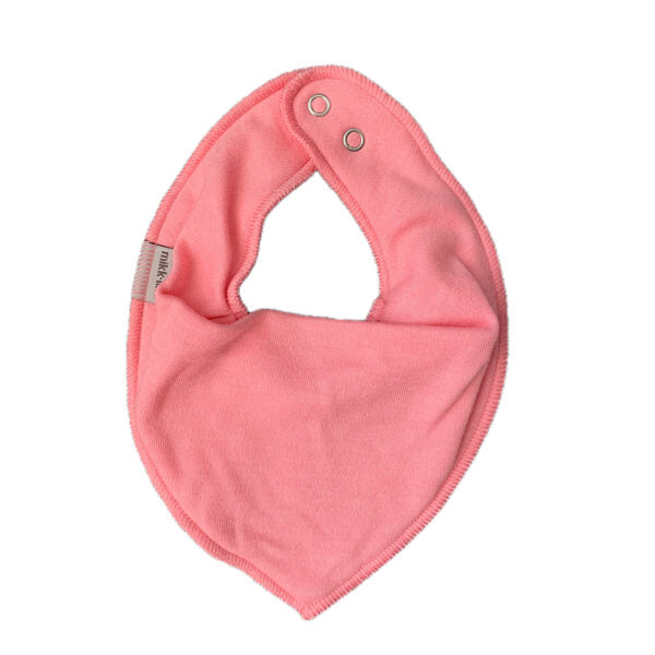 Rozā Mikk-line lacīte. Dubults audums, pa vidu papildus slānis. Divas spiedpogas platuma regulēšanai ap kaklu.