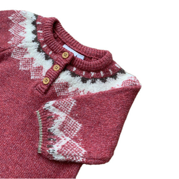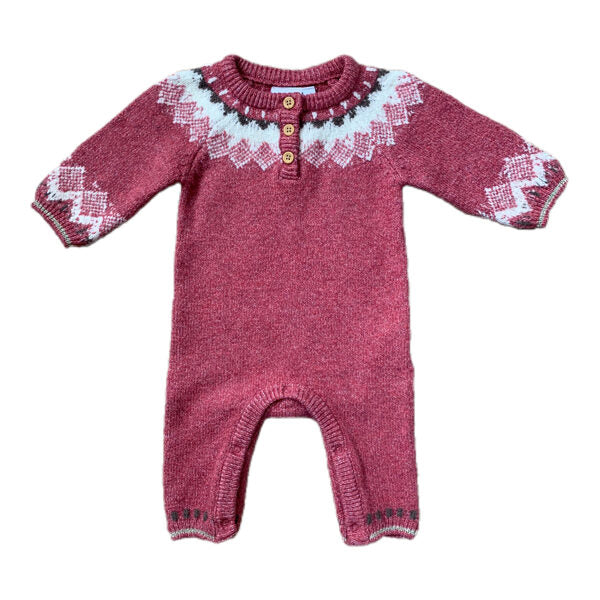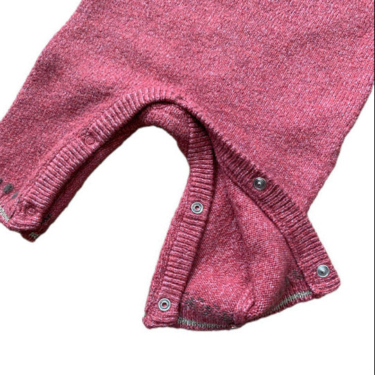 Adīts mazuļu kostīms, priekšpusē 3 pogājams pogas ērtākai ģērbšanai. Apakšdaļa atverās pilnībā ar spiedpogām - ērtākai ģērbšanai. Adījums maigs uz tausti.
