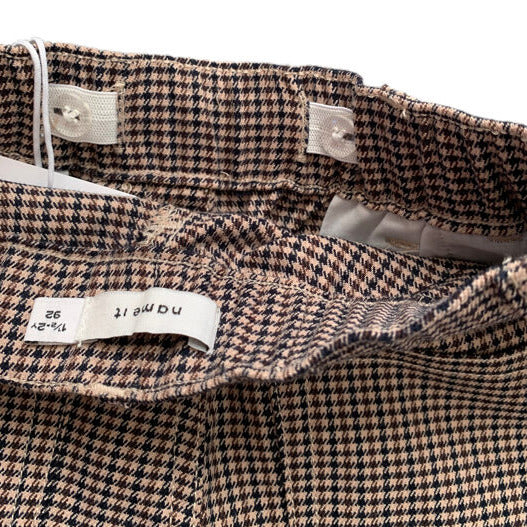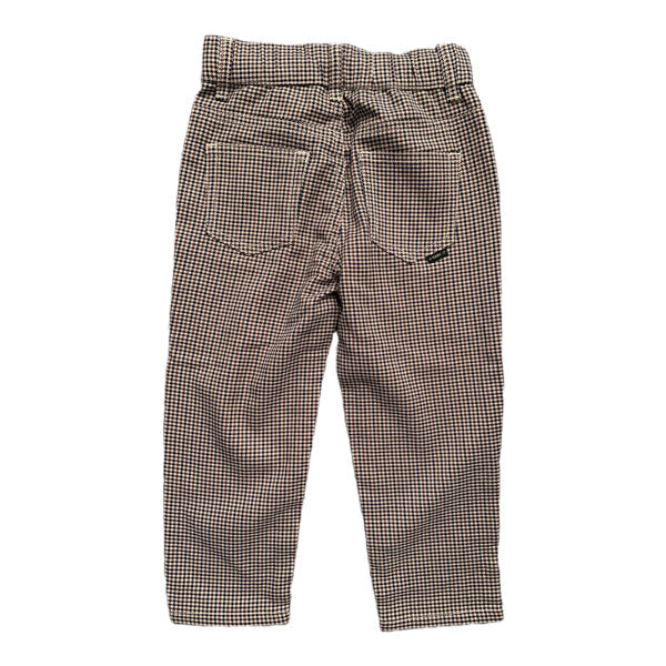 Stilīgas auduma bikses ar rūtainu rakstu. Ir sānu kabatas. Viduklis regulējas ar gumiju un pogām.