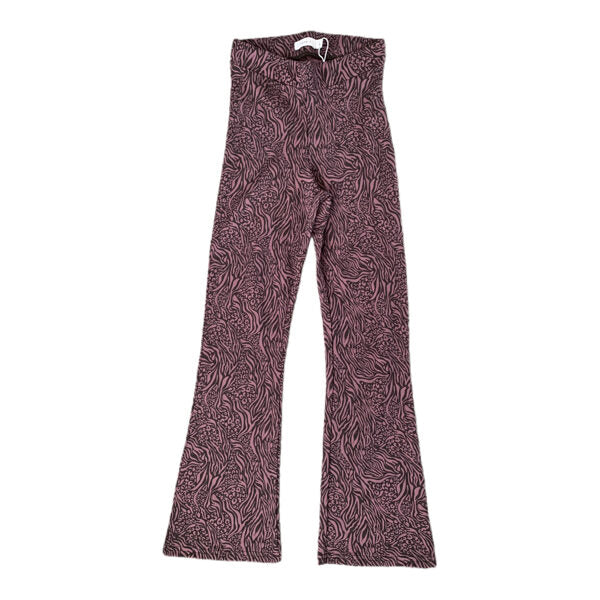 Auduma bikses Boot cut - ar paplatinātiem galiem. Augsts viduklis. Vecrozā krāsa ar melnu rakstu. Vidukļa platums regulējams.