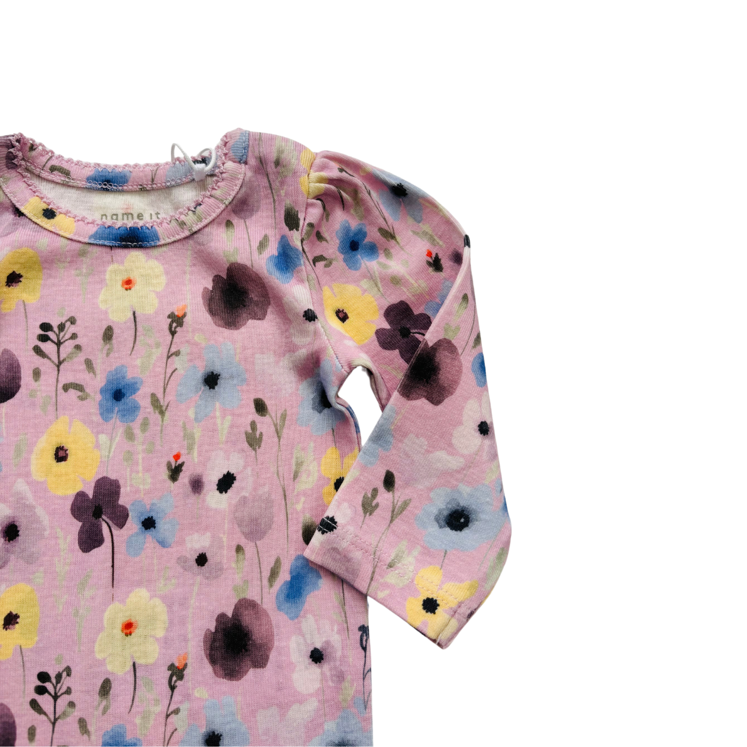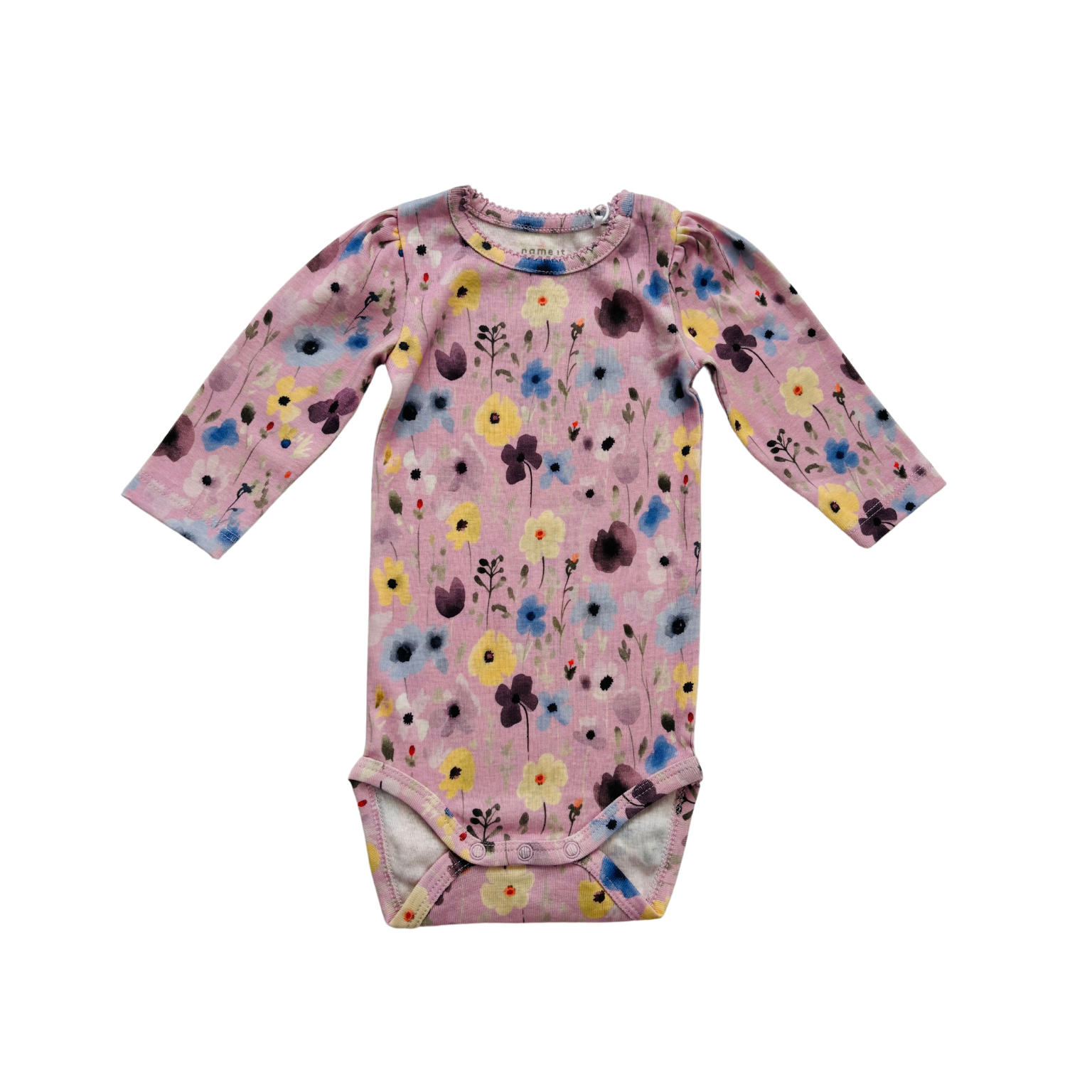 Rozā bodijs ar ziedu printu. Audums maigs uz tausti pateicoties sastāvā esošām Lyocell Tencel šķiedrām.