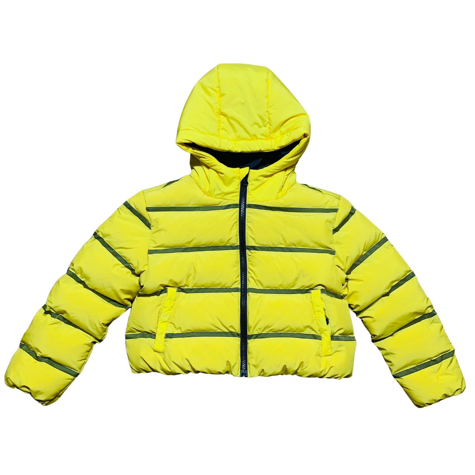 Dzeltena ar melnām strīpām, crop garuma (saīsināta) virsjaka. Siltināta.