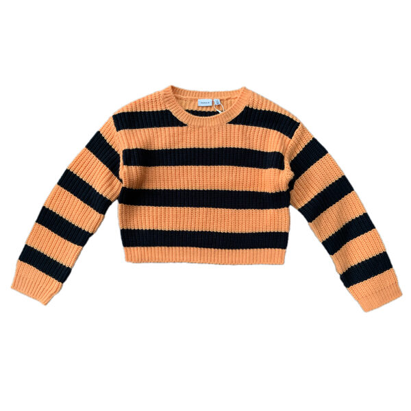 Adīts crop garuma džemperis. Oranžs ar melnu.