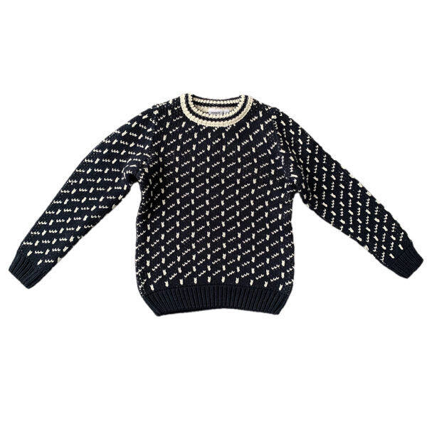Biezs adījums, zili-melns ar krēmbaltu.