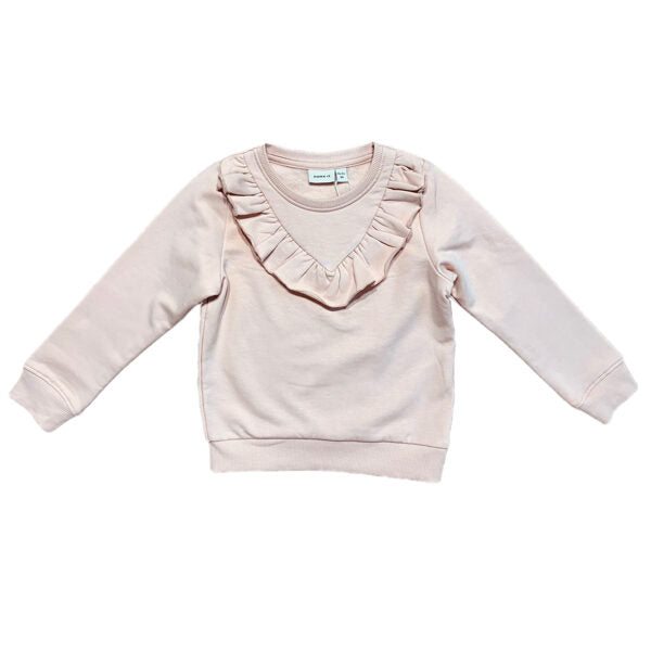 Maigi rozā džemperis ar volāniņu, iekšpusē maigs kokvilnas flīsa siltinājums.