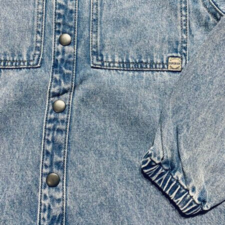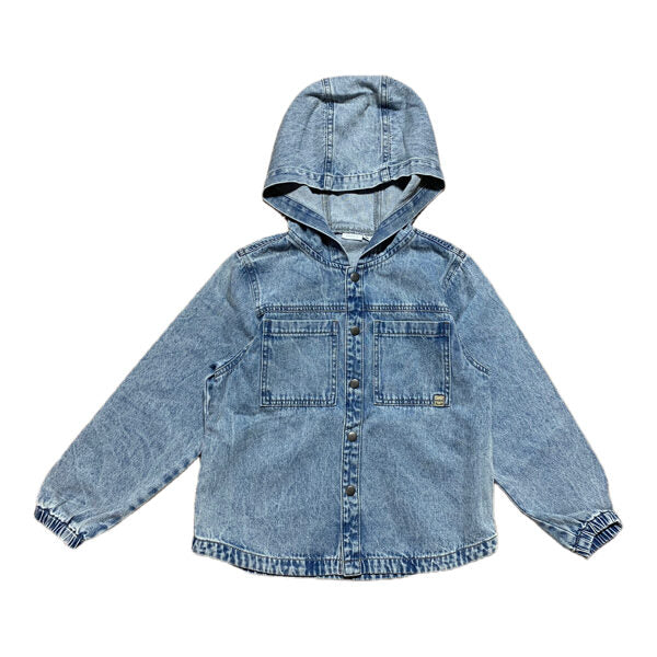 Zils Name it džinsa krekls ar garām piedurknēm un kapuci. Aiztaisāms ar spiedpogām. Priekšpusē ir kabatas.