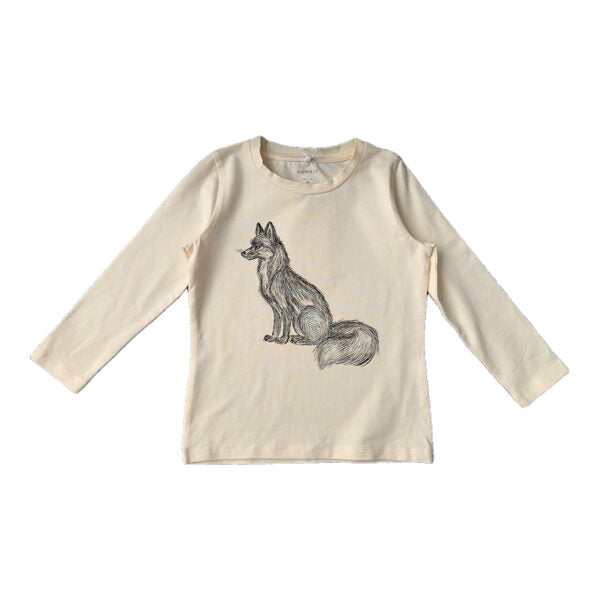 Krēmkrāsas garroku krekls ar lapsas apdruku.