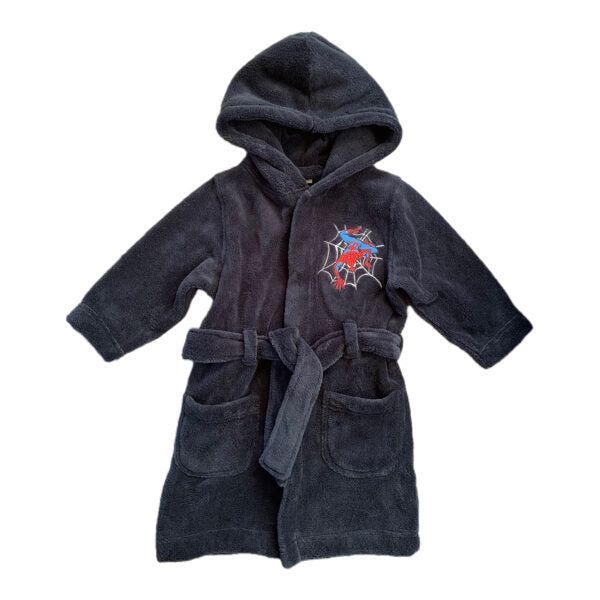 Tumši zils halāts ar Spiderman motīviem. Kabatas, josta.