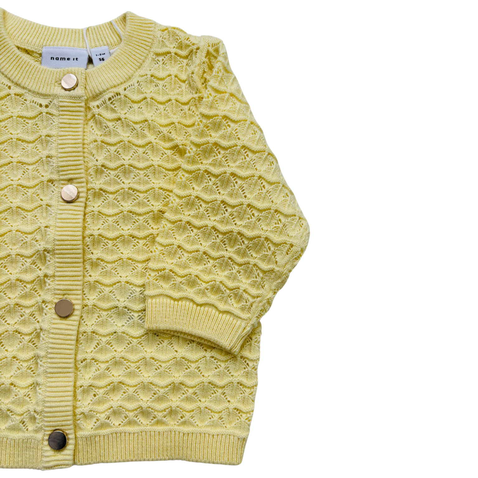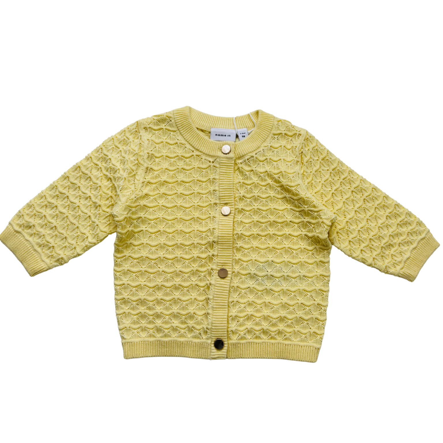 Maigi dzeltena, plāna adījuma jaka. Zeltītas pogas.