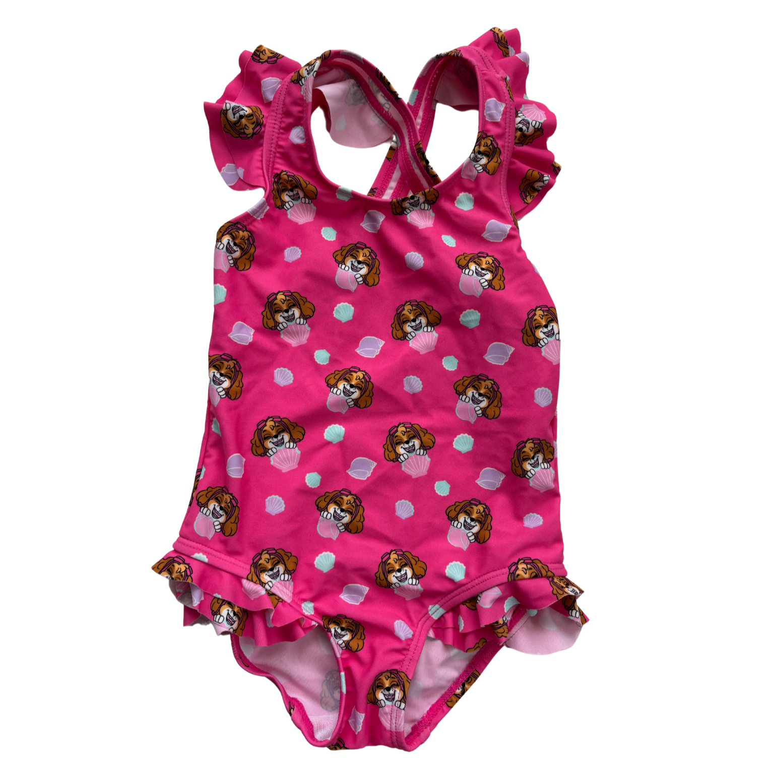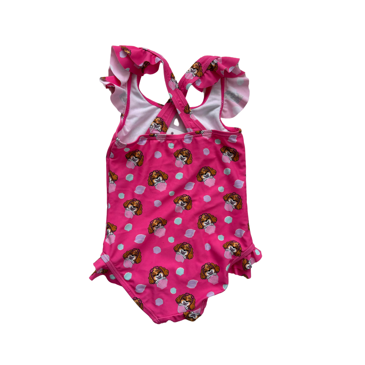 Koši rozā (fuksijas krāsas) pelkostīms ar Paw Patrol Skye printu. Dekoratīvas volāna maliņas.