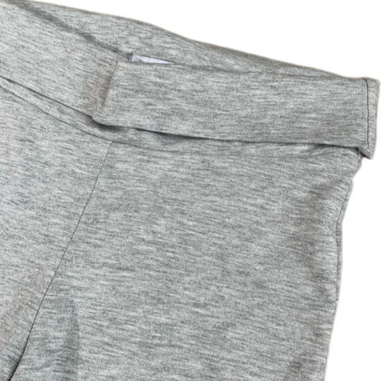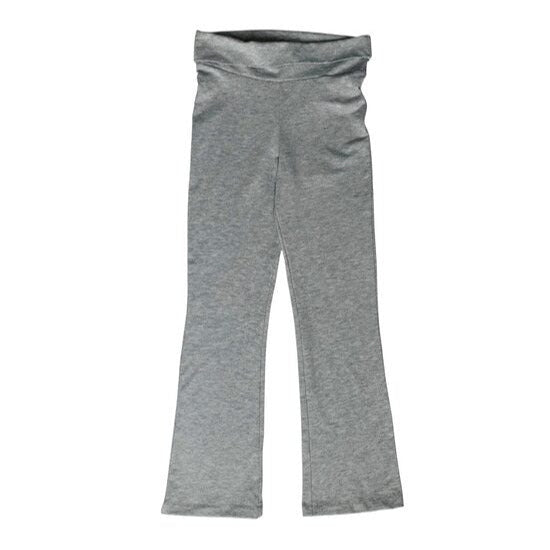 Gaiši pelēkas plānās bikses, mazliet paplatināti gali. Boot-cut garums.