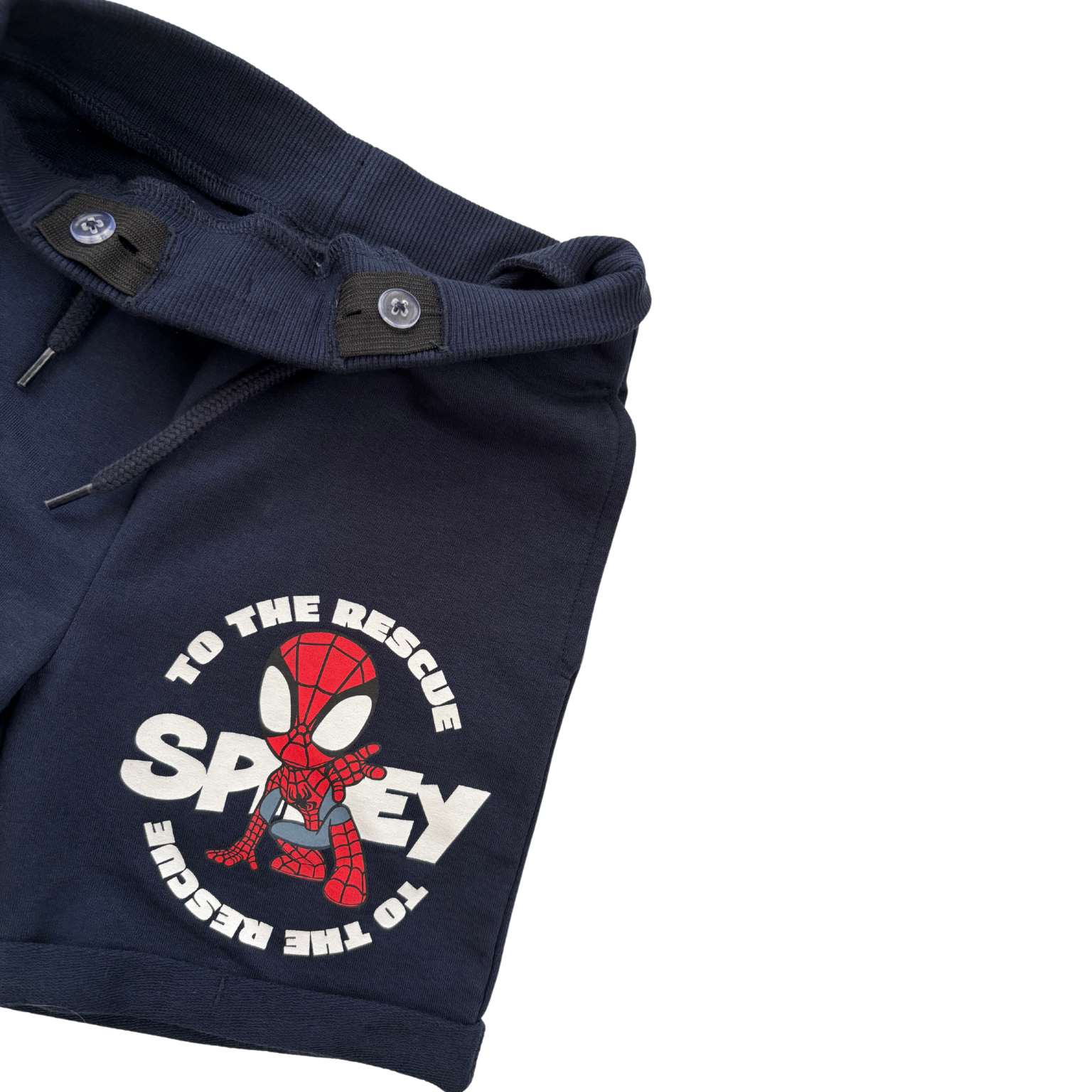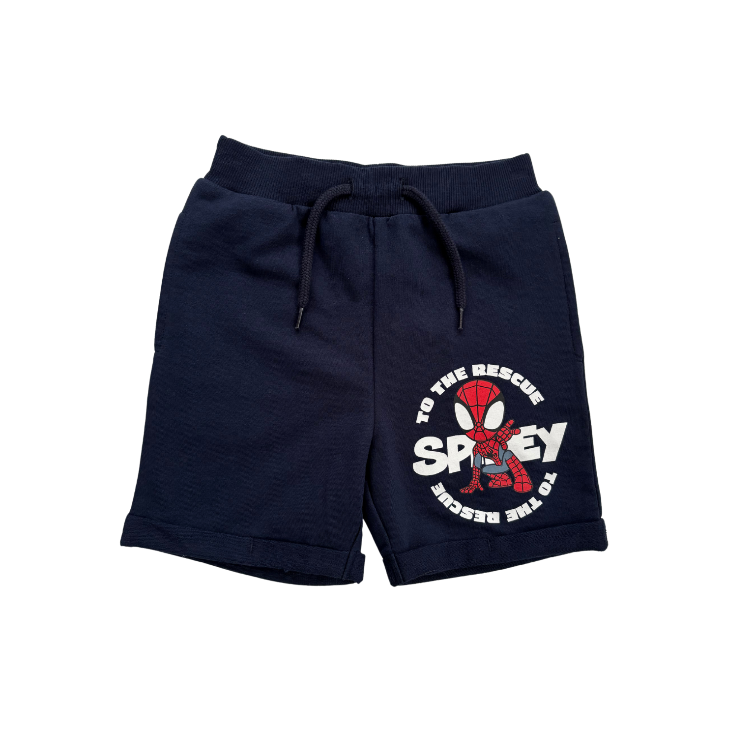 Tumši zili šorti ar Spiderman printu. Sānos kabatas. Viduklis regulējams ar pogām un gumiju jostā.