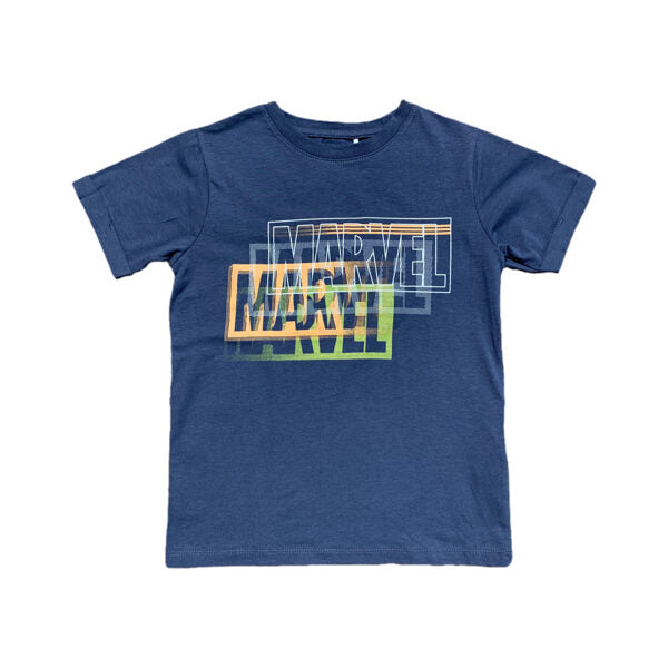 Zils Name it t-krekls ar Marvel uzraksta printu.