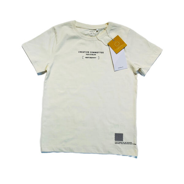 Name it tkrekls krēmbalts. Ar uzrakstu printu.