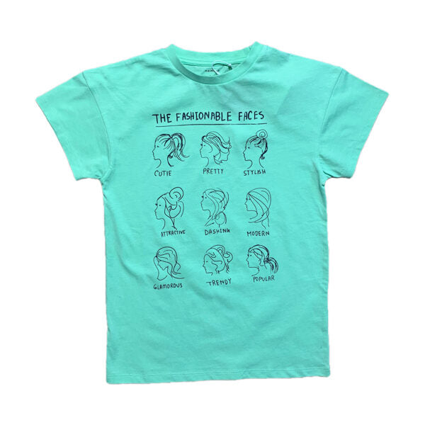 Gaiši zaļš t-krekls ar printu.