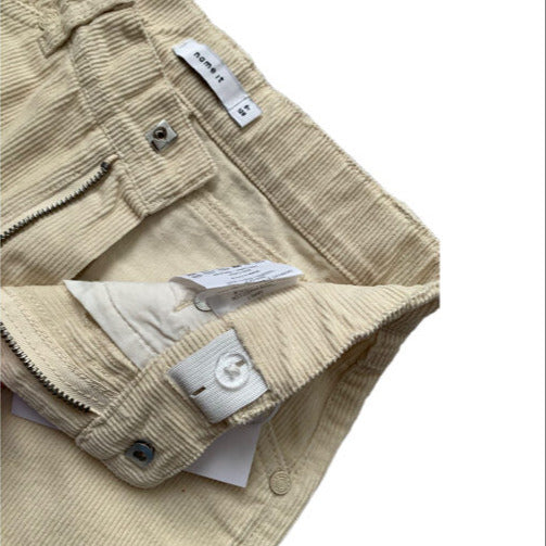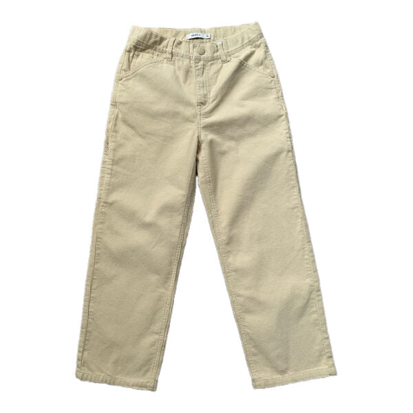 Gaišas, krēmkrāsas Name it velveta bikses Ryan. Taisnas, platas. Vidukļa apkārtmērs regulējams.