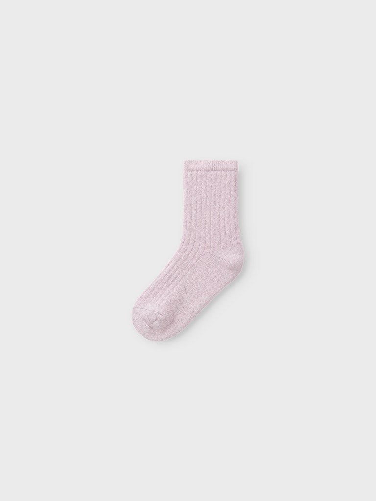 Name it zeķes, 2 pāri iepakojumā - krēmbaltas un rozā. Rievota tekstūra, spīdīgs akcents. Elastīgas, piemērotas gan ikdienai, gan svētkiem.