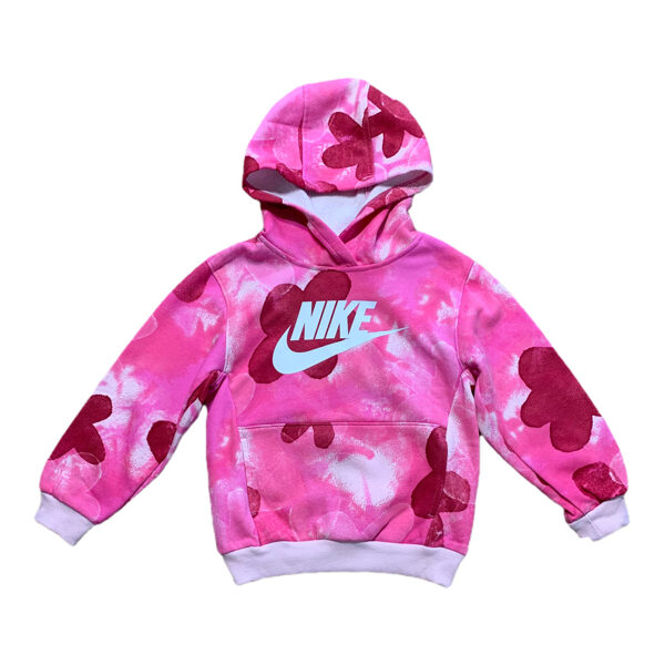 Koši rozā hūdijs ar ziedu printu. Priekšpusē kabatas. Nike logo. Iekšpuse ar mīkstu, maigu siltinājumu.