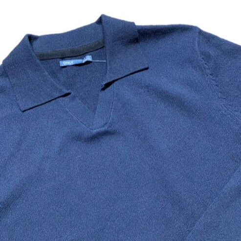 Tumši zils Only džemperis, plāns adījums. Polo tipa - ar apkakli.