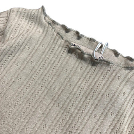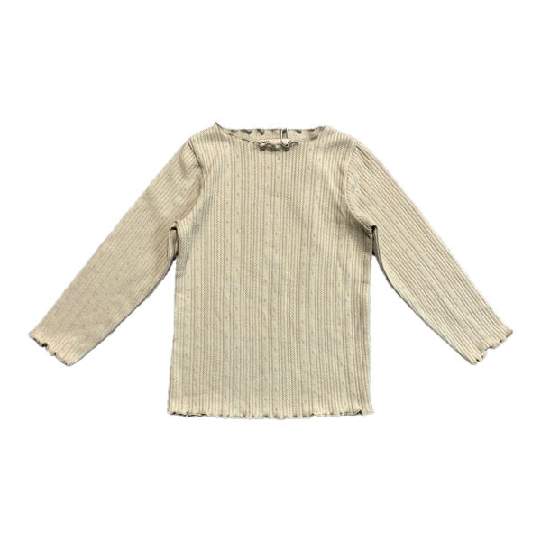 Bēšs garroku krekls ar rakstu. Kruzuļaina apakšmala, apkaklīte un piedurkņu gali.