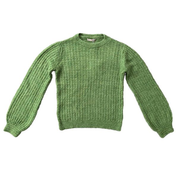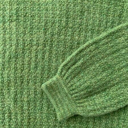 Zaļš adīts džemperis. Uz tausti maigs adījums.
