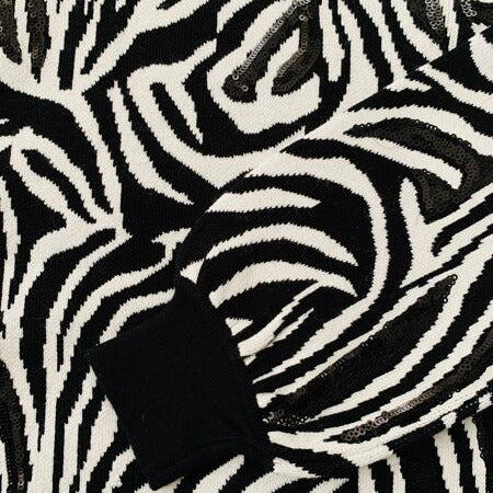 Melnbalts džemperis ar rakstu. Vietām melni glitteri.