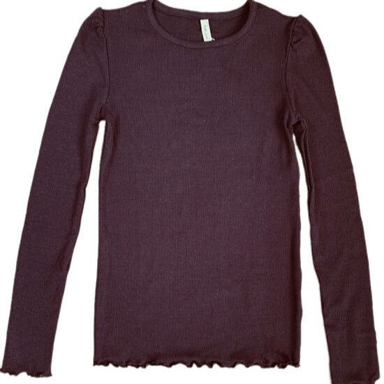 Violeti-brūns ribbed auduma garroku krekls ar kruzuļainu maliņu.