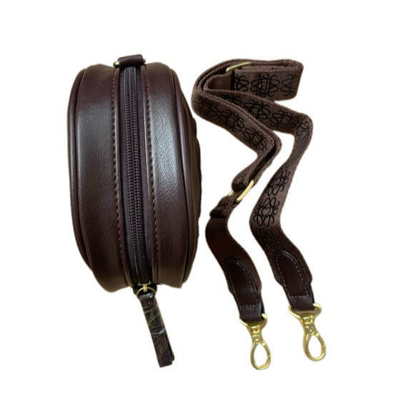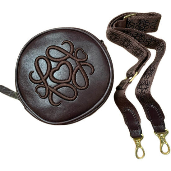 Violeti brīna ar izšūtu rakstu - apaļa somiņa jaunkundzei. Plecu lence noņemama.