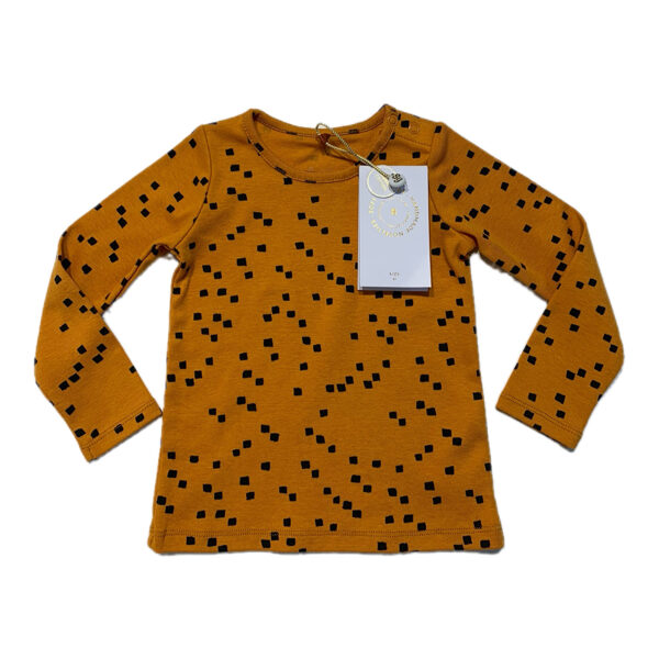 Oranžs garroku krekls no GOTS sertificētas kokvilnas. Audums maigs uz tausti. Pleca daļā spiedpogas ērtākai ģērbšanai.