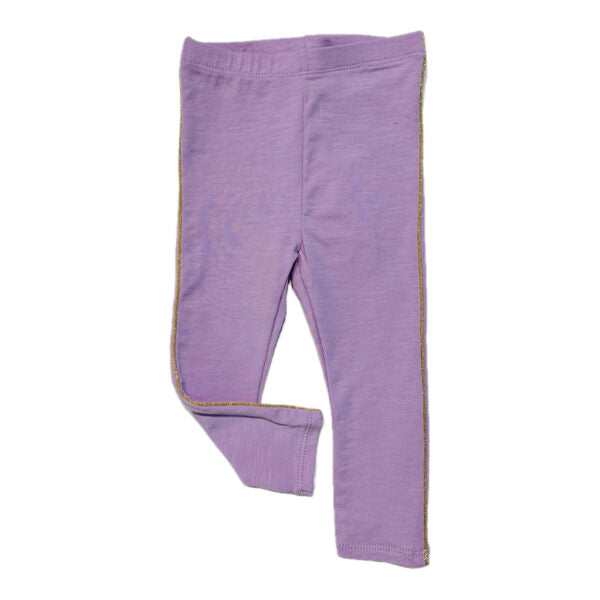 Gaiši violeti organskās kokvilnas legingi ar zeltainu maliņu sānos.