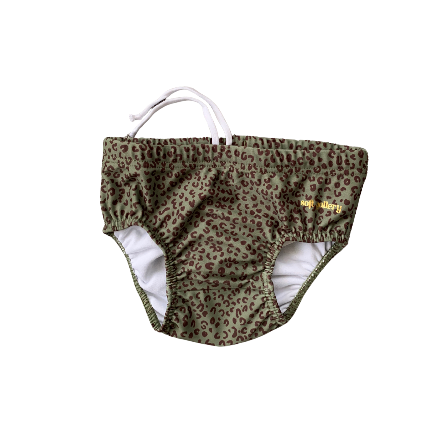 Zaļas peldbikses ar leoparda rakstu. UPF 50+ (ultraviolet protection factor) aizsardzība.