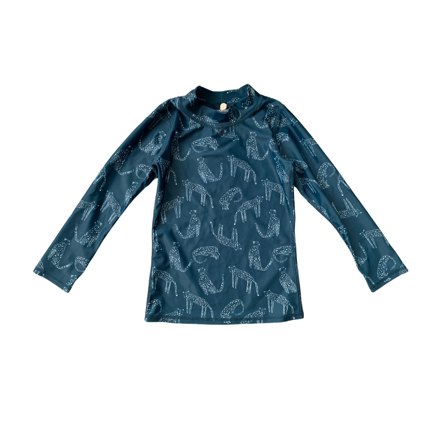 Zils krekls ar leopardu printu. UPF 50+ (ultraviolet protection factor) aizsardzība.