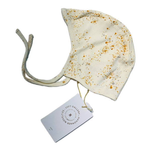 Krēmkrāsas cepure ar punktiņu printu. Audums vienā kārtā. Sienama.