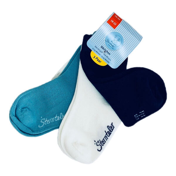 Bērnu zeķes Sterntaler - krēmbaltas, tirkīzzilas, tumši zilas. Iepakojumā 3 pāri.