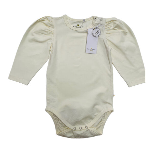 Krēmkrāsas bodijs ar kuplāku pleciņu daļu. Pleca daļā spiedpogas ērtākai ģērbšanai.