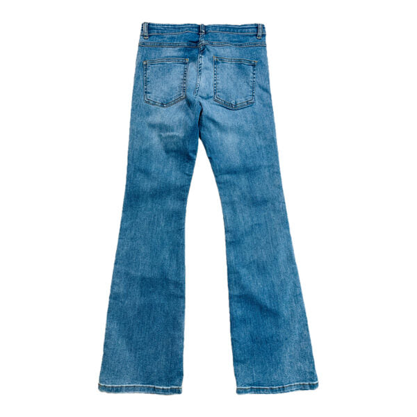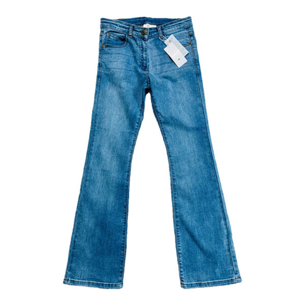 Zili džinsi ar paplatinātiem galiem. Vidukļa platums regulējams.