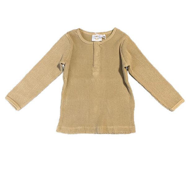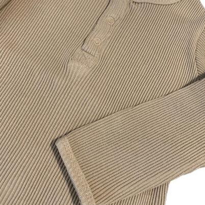 Gaiši brūns organiskās kokvilnas ribbed garroku krekls. Priekšpusē spiedpogas ērtākai ģērbšanai.